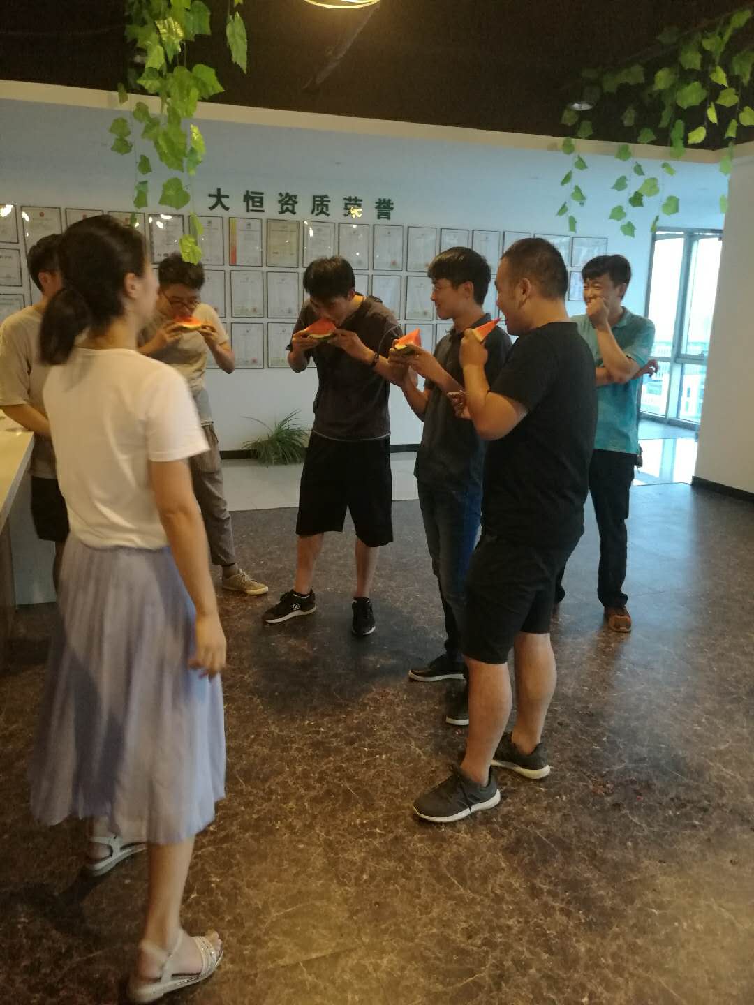 平时别看我们的项目组大佬爷们粗犷粗犷的,吃起瓜来还怪斯文的,都是小口小口抿着,人家这才叫“品尝”~~